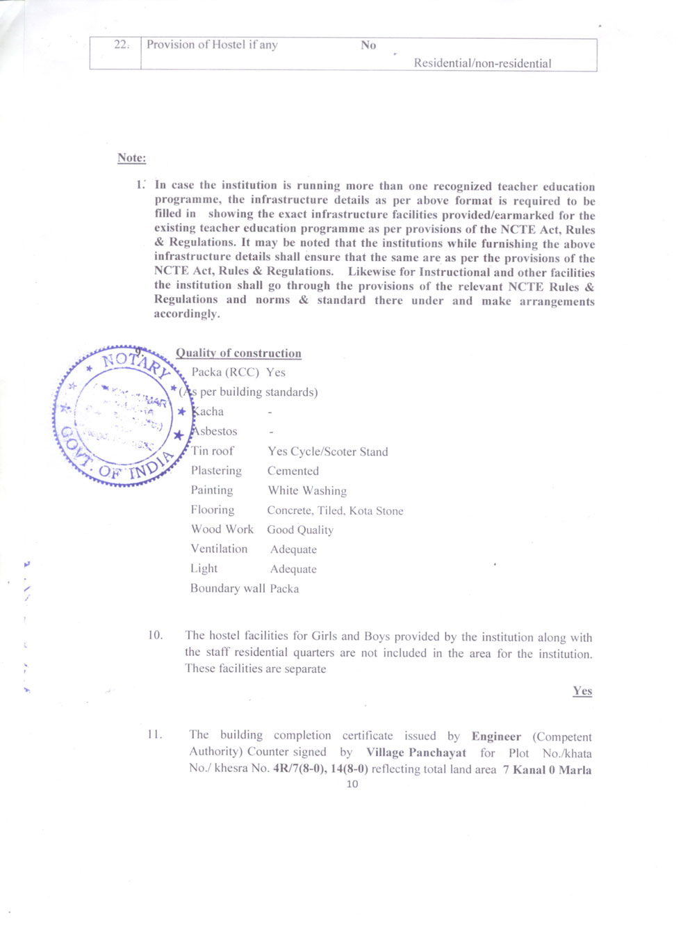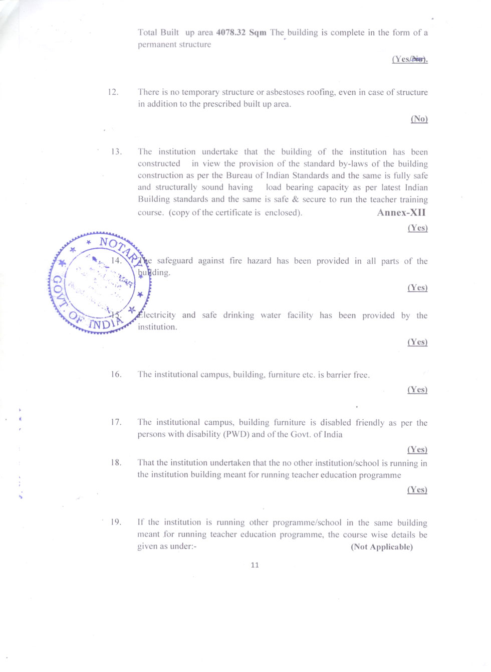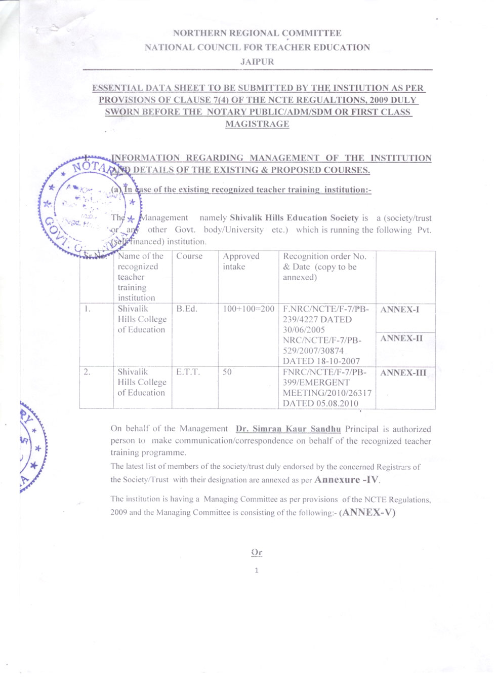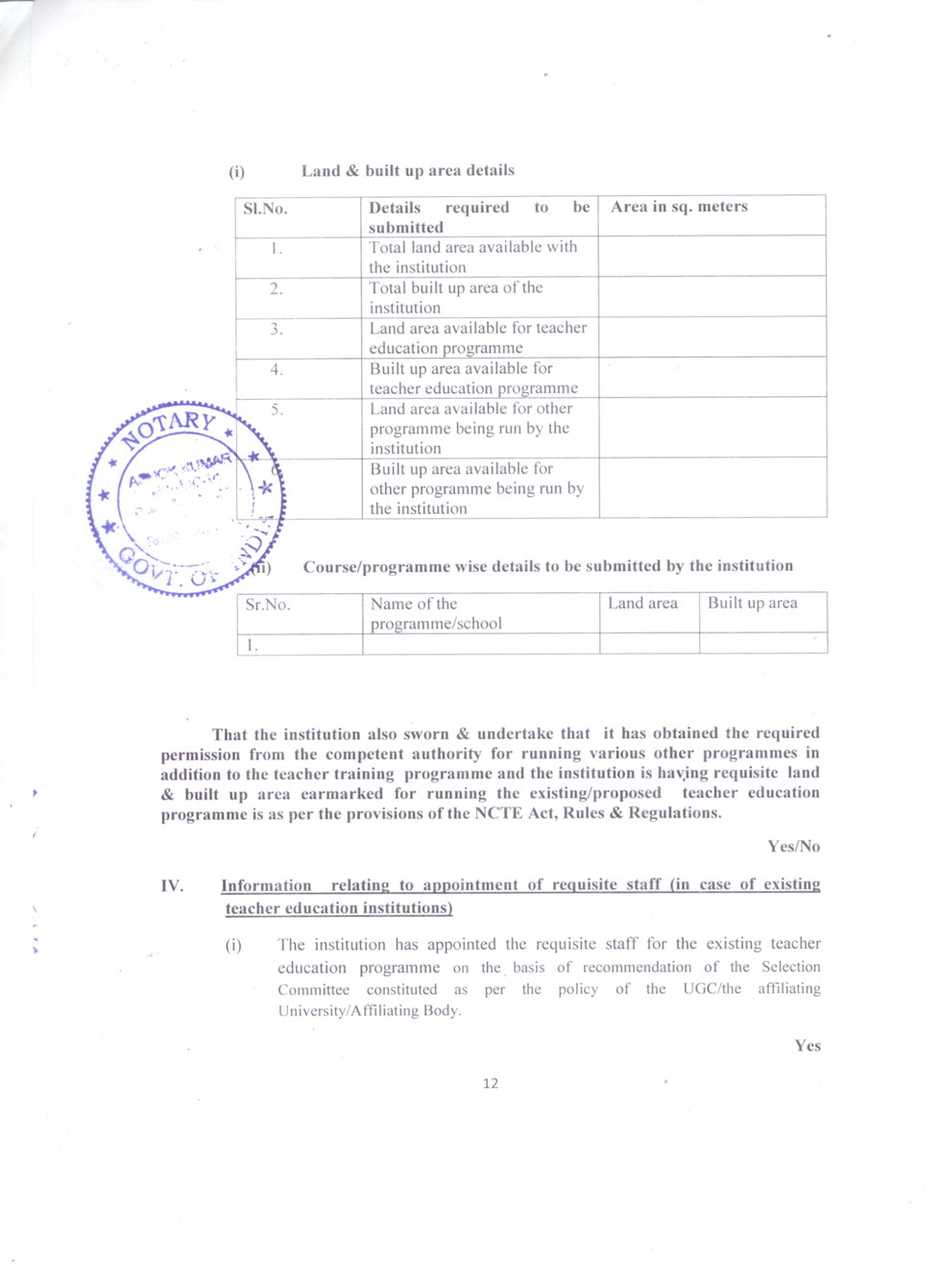 | 1 | B.Ed Course | : | 2 Units (100 students) |