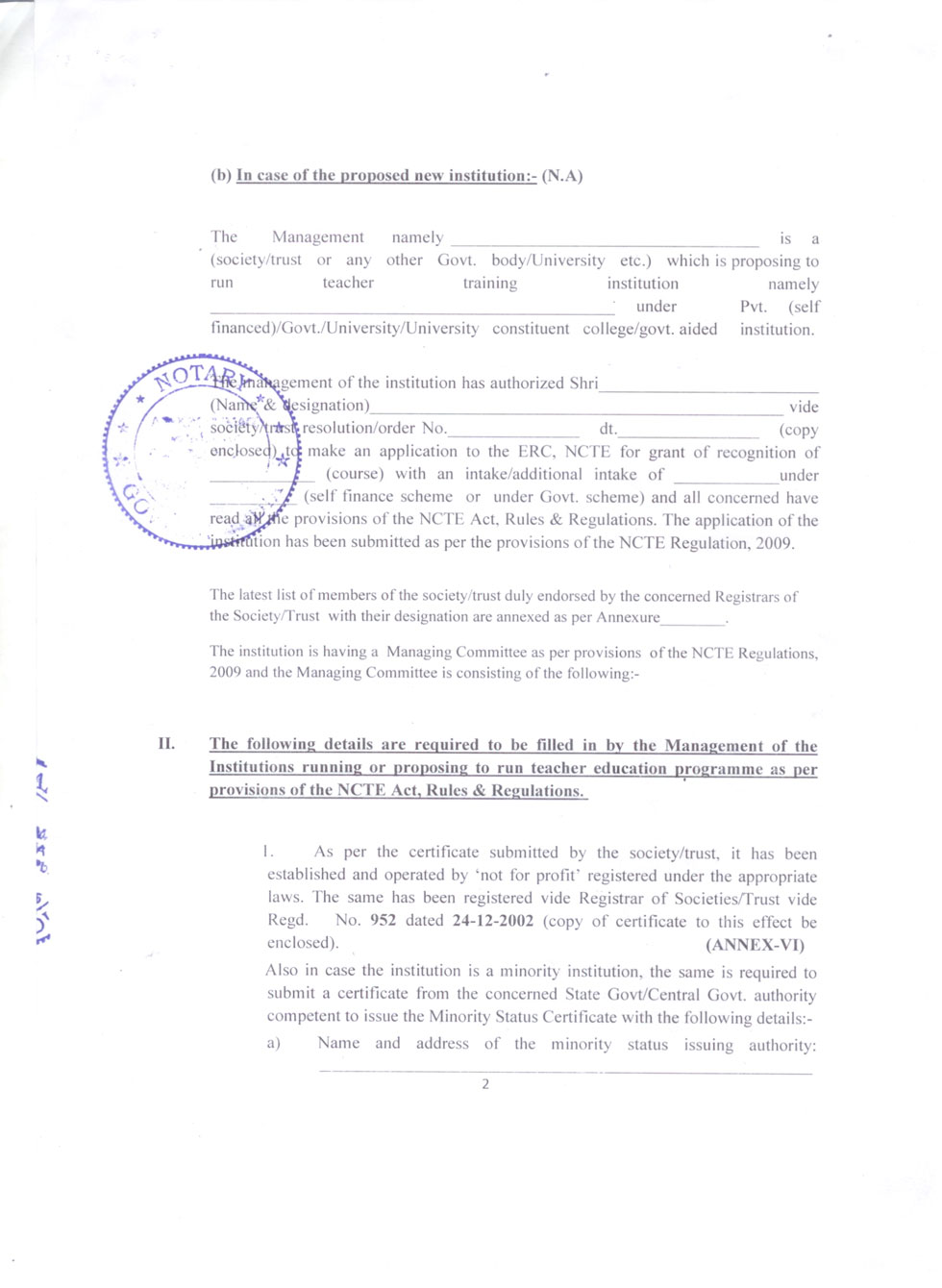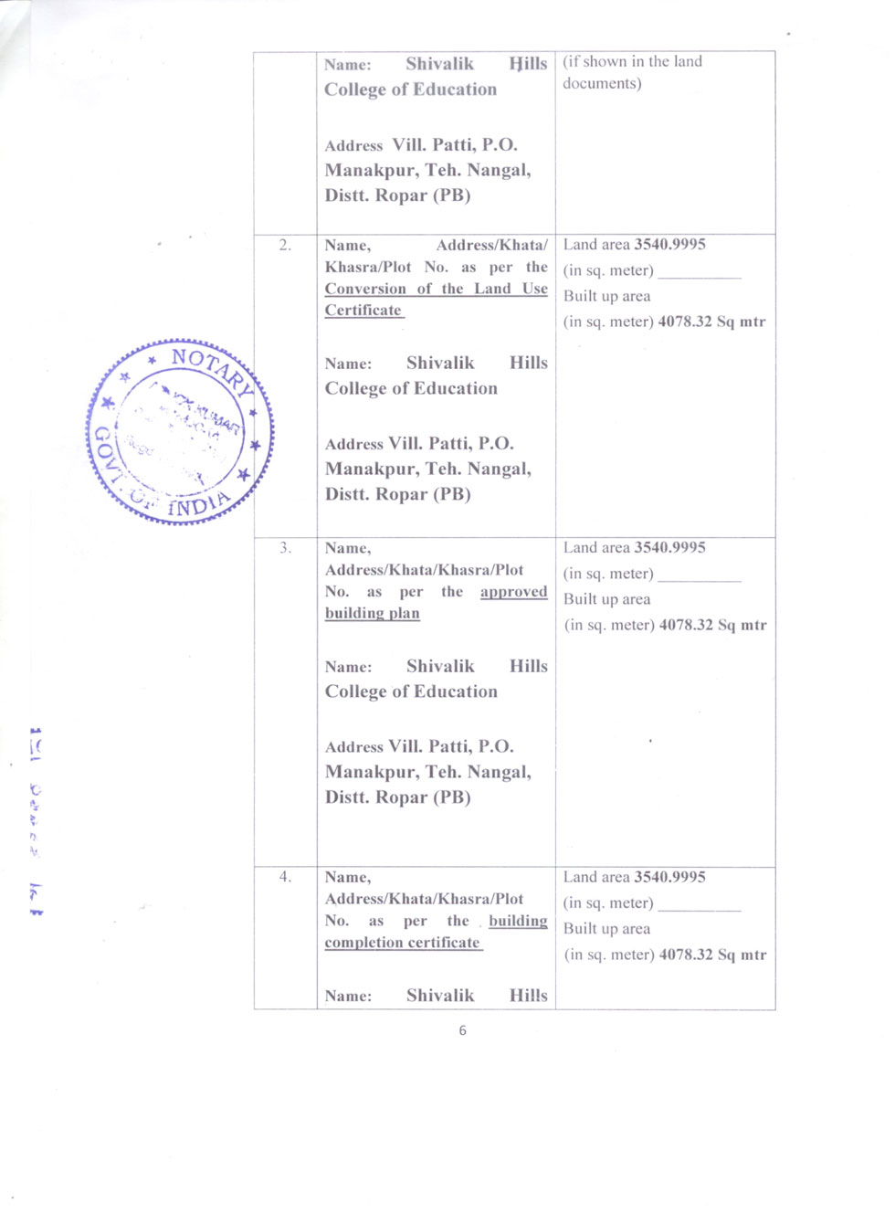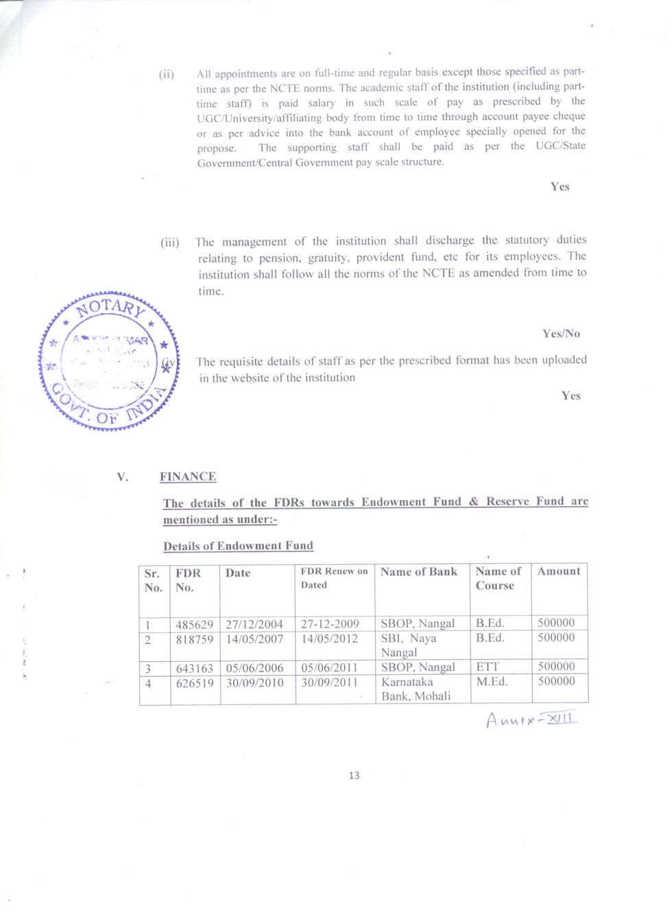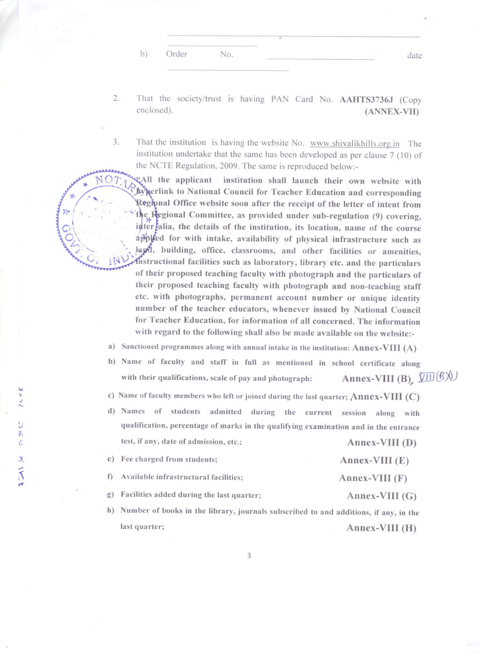 | 1 | B.Ed Course | : | 2 Units (100 students) |