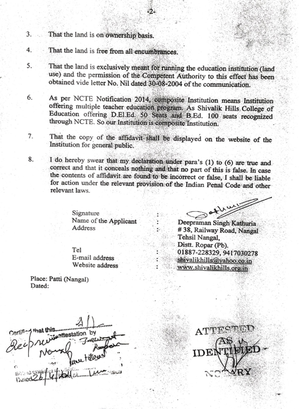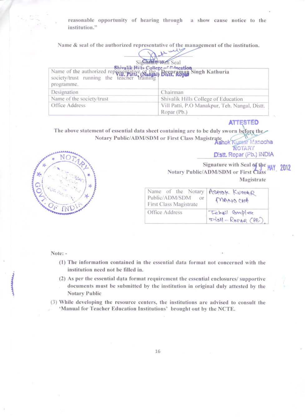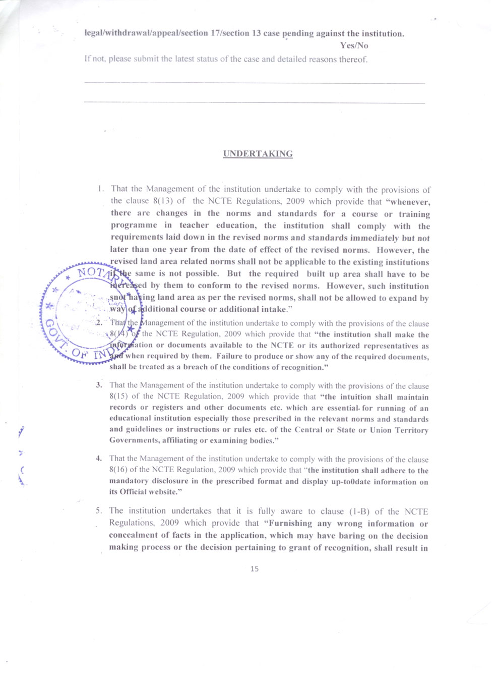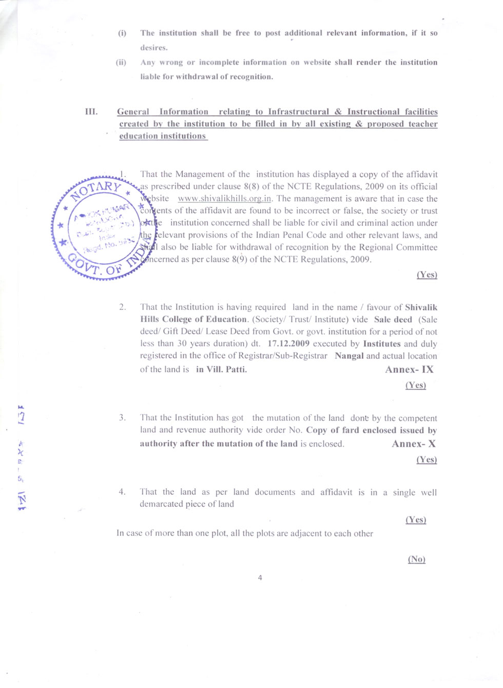 | 1 | B.Ed Course | : | 2 Units (100 students) |