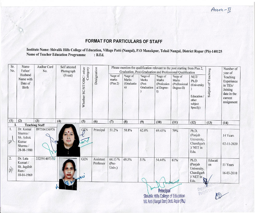 | 2 | Ms. Bhawana Sharma | : | Asstt. Professor in Teaching of S.St. |