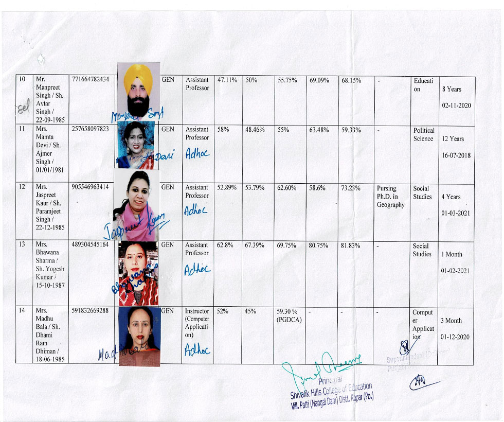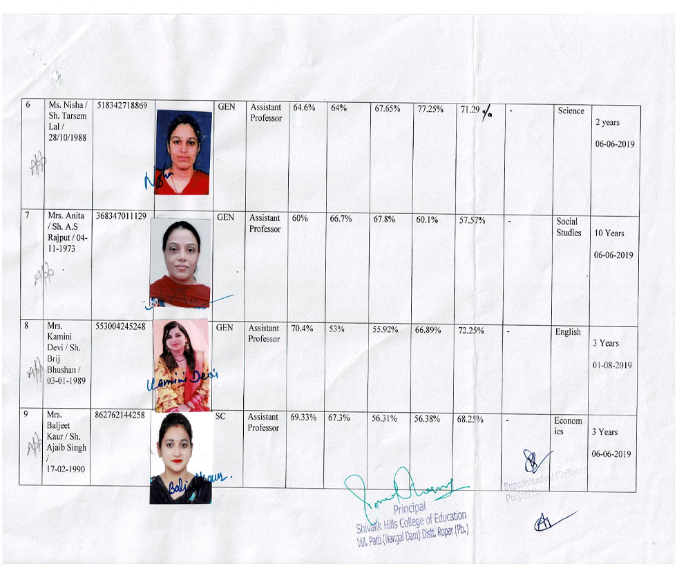 | 1 | Ms. Jaspreet Kaur | : | Asstt. Professor in Teaching of S.St. |