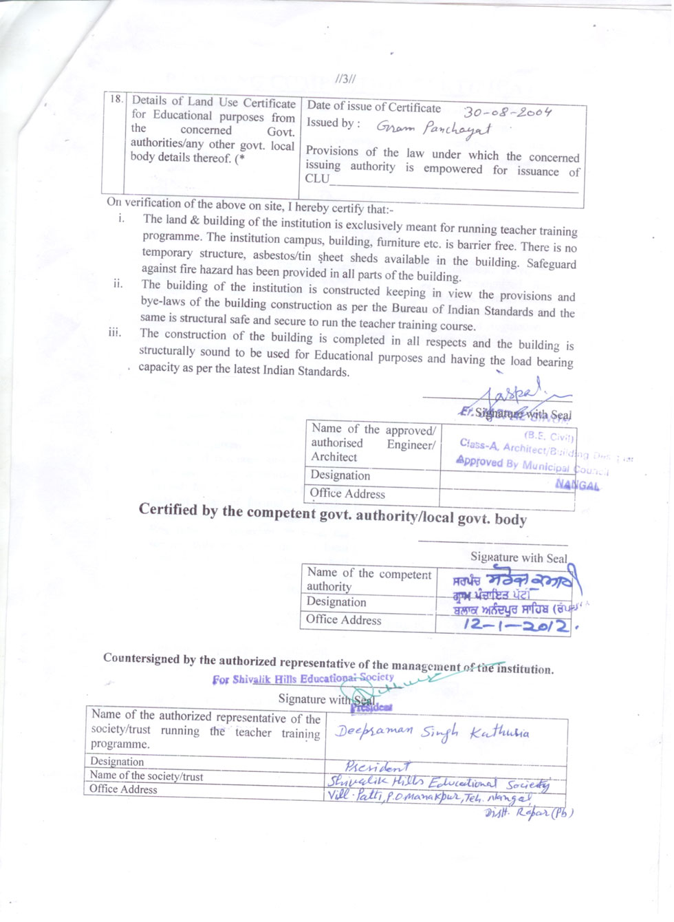| Other Charges Per Year | : | Rs. 21000/- | ||